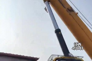 男子看同事开吊车真是胆大,吊物超载把吊车头抬了三抬